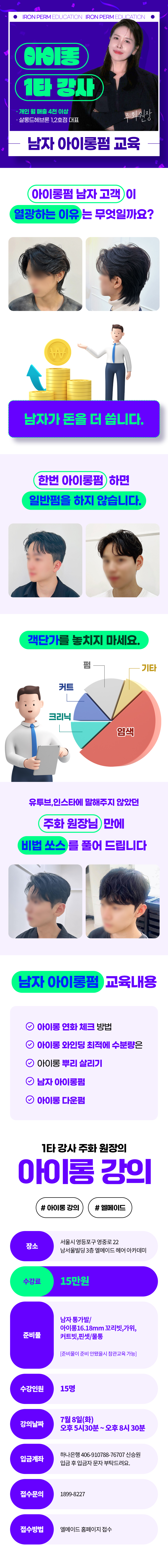 아이롱 1타 강사의 남자 아이롱펌 특강 안내