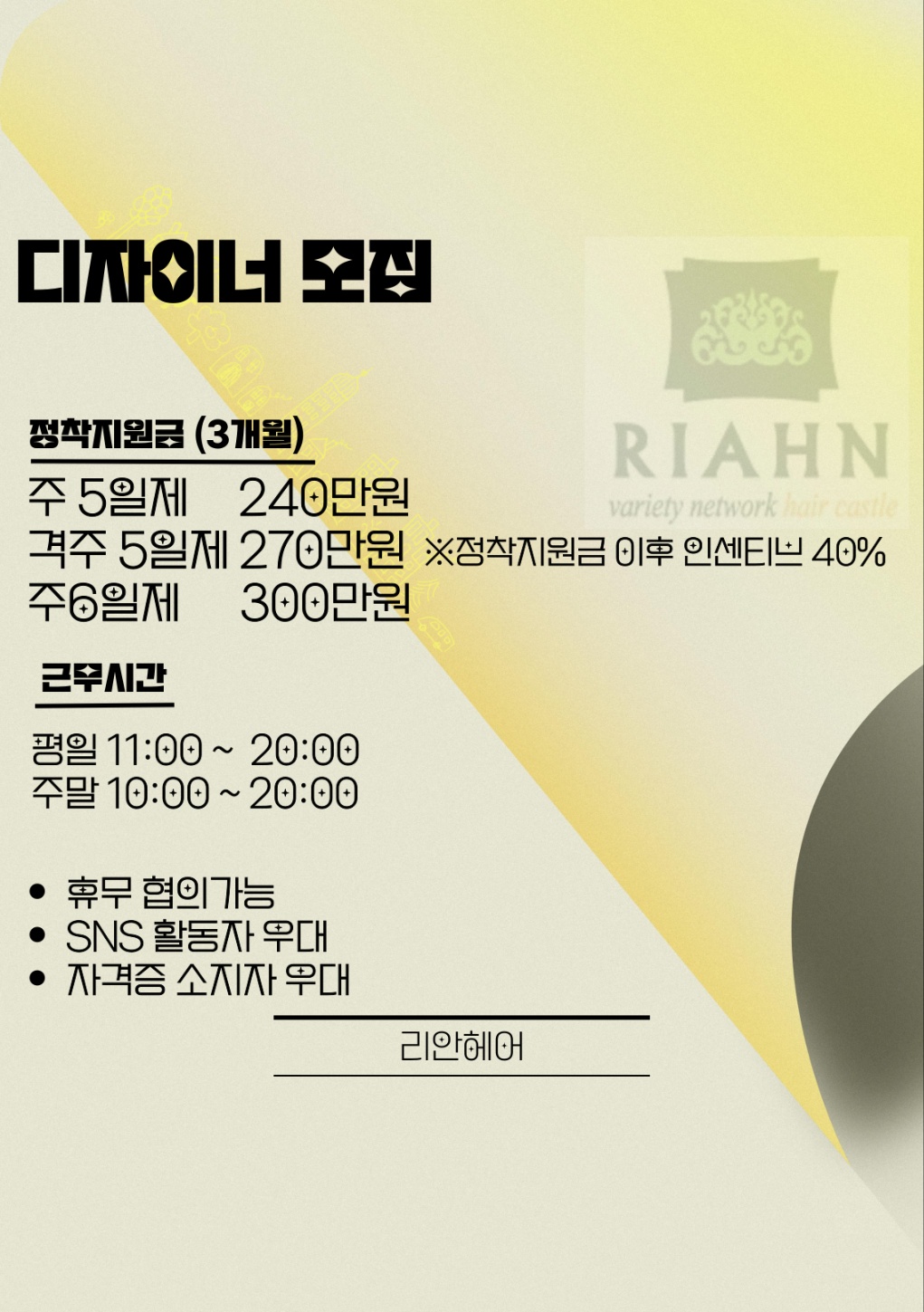 스태프 초급 1명 / 월급 210만 이상