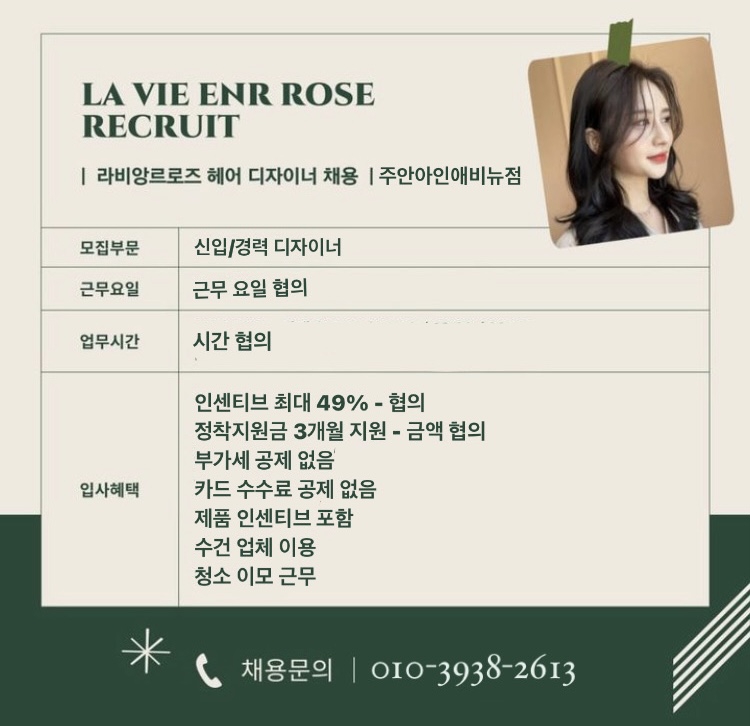 - 라비앙르로즈 주안아인애비뉴점에서 함께 일하실 디자이너 모집합니다.