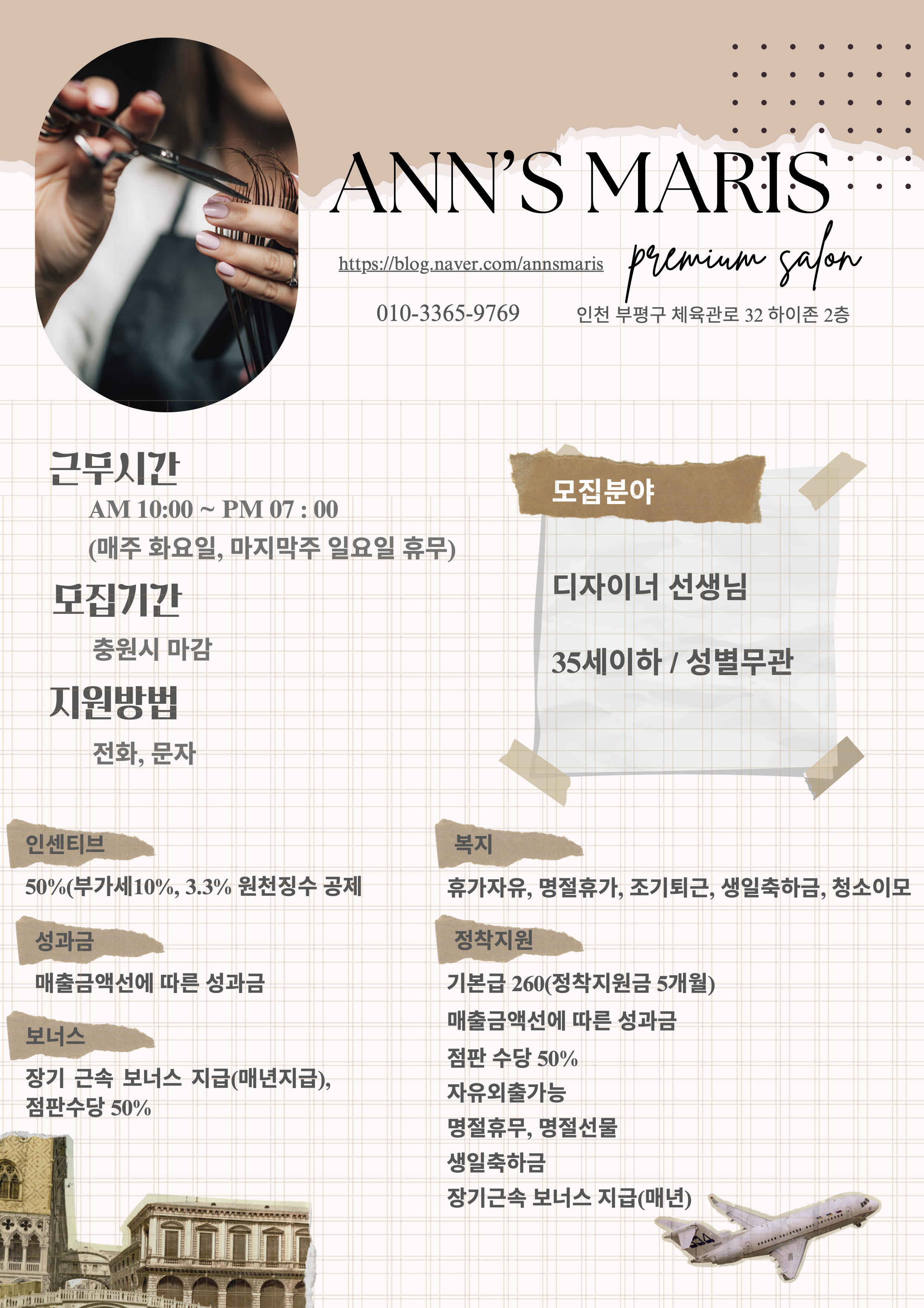 인천 부평구 삼산동 에 위치한 앤스마리스에서 함께 근무할 디자이너쌤 구해요!!