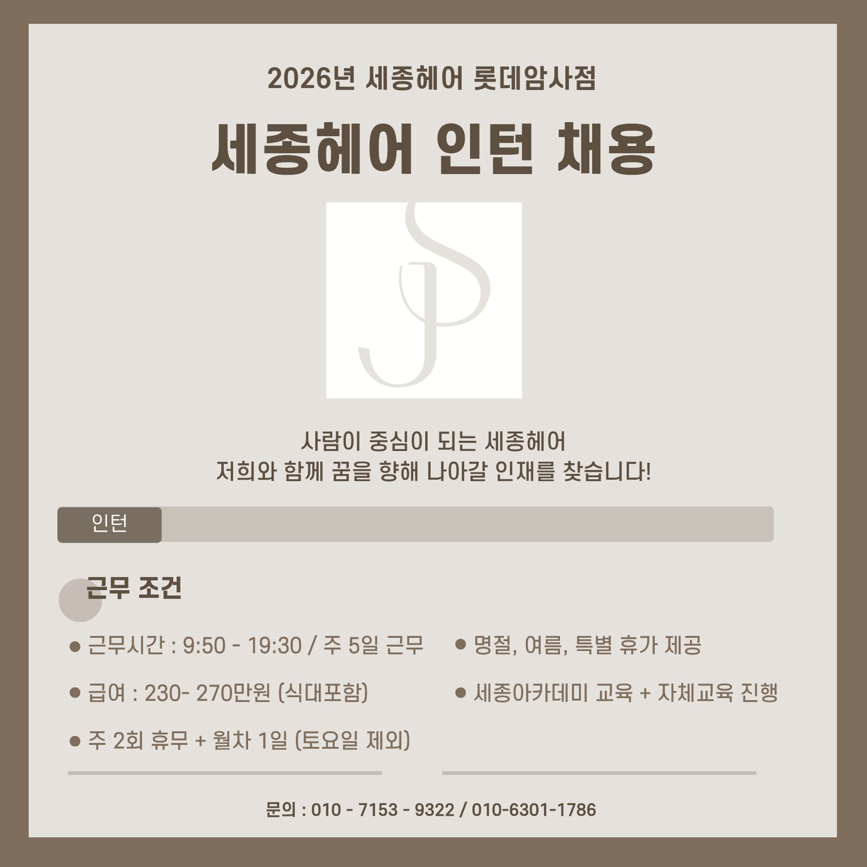 스태프 초급 1명 / 월급 협의